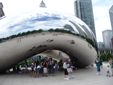 Es ist eine außergewöhnliche Skulptur im Millennium Park, genannt “Cloud Gate” (Wolkentor) die von dem indischen Bildhauer Anish Kapoor geschaffen wurde. Die Leute von Chicago haben ihr den Spitznamen „die Bohne“ gegeben und wenn es dir gefällt, kannst du einige tolle Bilder davon im Internet anschauen. Schau mal!  Ich glaube, du wirst es richtig mögen! Du kannst auch einiges über den Künstler Anish Kapoor auf seiner Website erfahren.